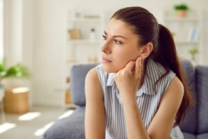 Close-up,Portrait,Of,Upset,Sad,Depressed,Woman,Sitting,On,The